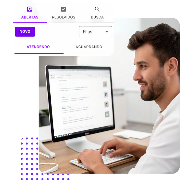Melhore sua eficiência! Nossa plataforma proporciona ferramentas poderosas para sua equipe gerenciar e priorizar atendimentos, garantindo que os tickets sejam resolvidos de maneira rápida e organizada, para uma experiência do cliente mais ágil.